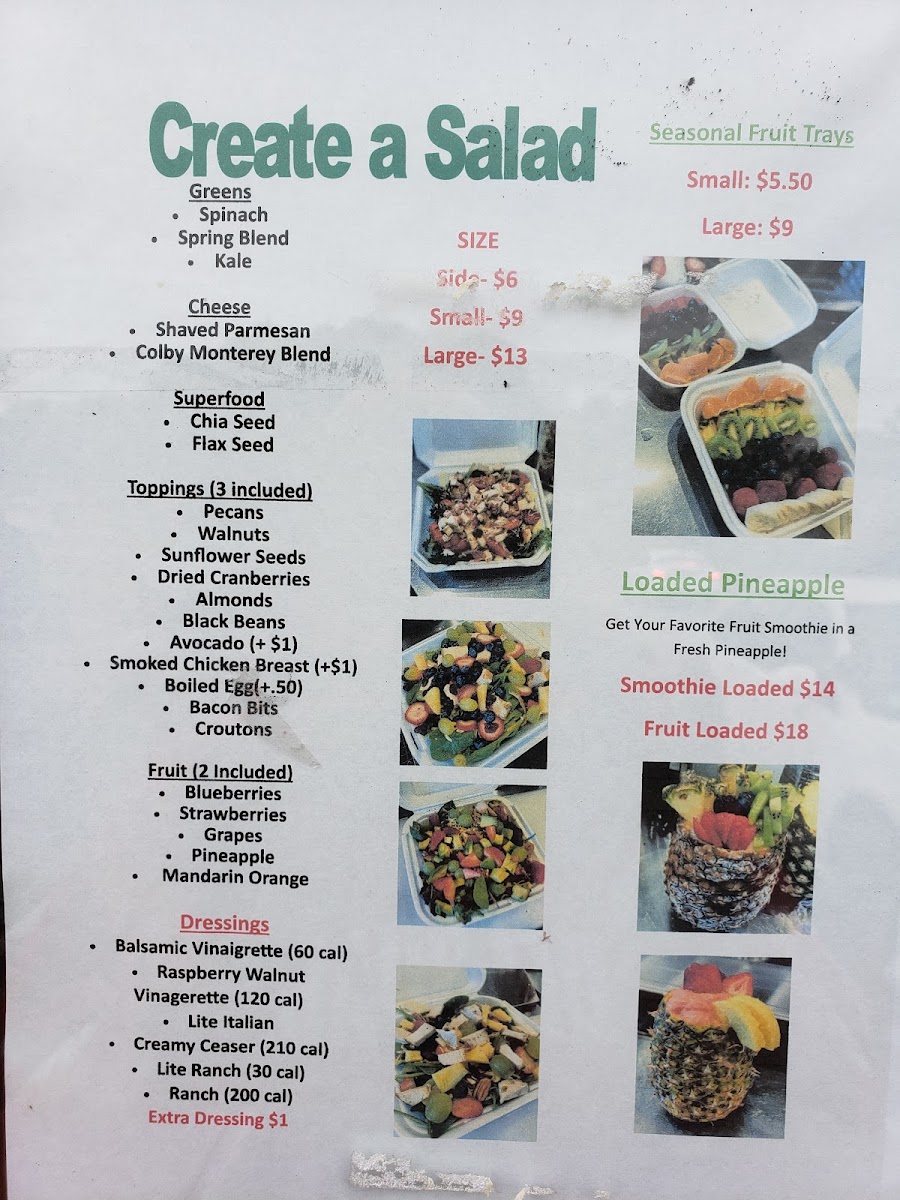 Our menu features a delightful array of offerings, from revitalizing fruit smoothies like the Kiwi Refresh to hearty salads such as the Strawberry Chicken Feta Salad. With options like the Chicken Bacon Spinach Wrap, there's something for everyone.